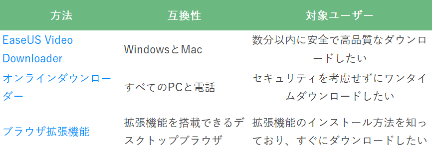 この記事を最後まで読んでいただければ、YouTubeからMP3プレーヤーに音楽をダウンロードする方法がわかるはずです。ご紹介した方法の中から、自分にとって一番使いやすいものを選んで、さっそく始めてみましょう。また、EaseUS Video Downloader に興味のある方は、下のボタンをクリックしてインストールしてみてください。