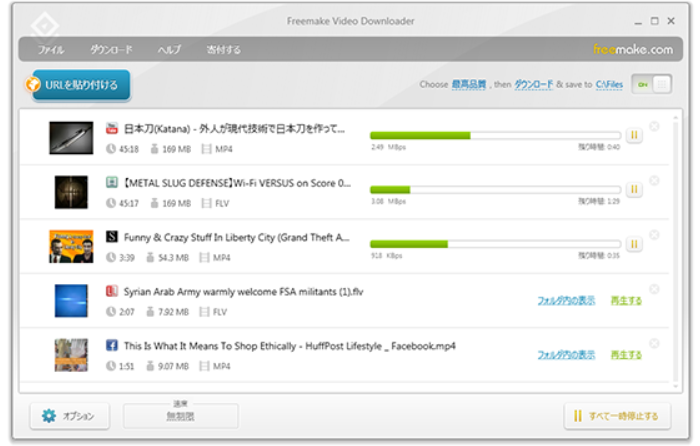 - MP3、MP4、その他のファイル形式で動画をダウンロード