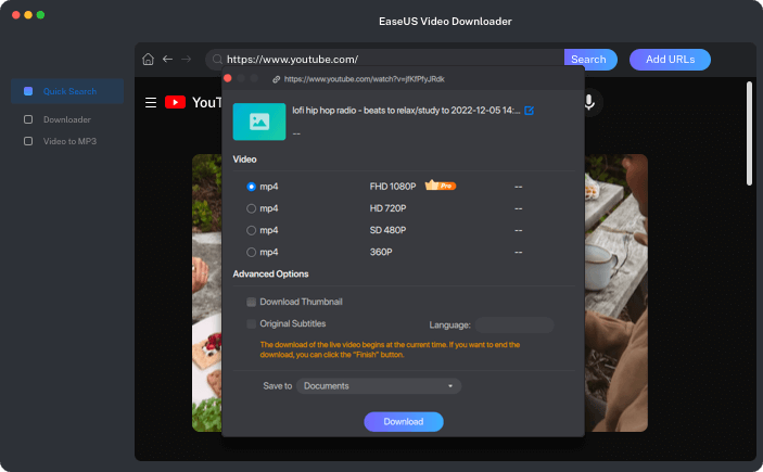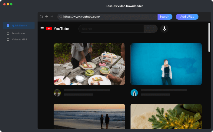 EaseUS Video Downloader is the best Mac video downloader that helps to download and save online videos with audio from over 1000 popular video sites like YouTube, Facebook, Twitter, TikTok, Instagram, Vimeo, and Dailymotion. All video downloads come in 4K/HD or even 8K quality without limit on the formats.