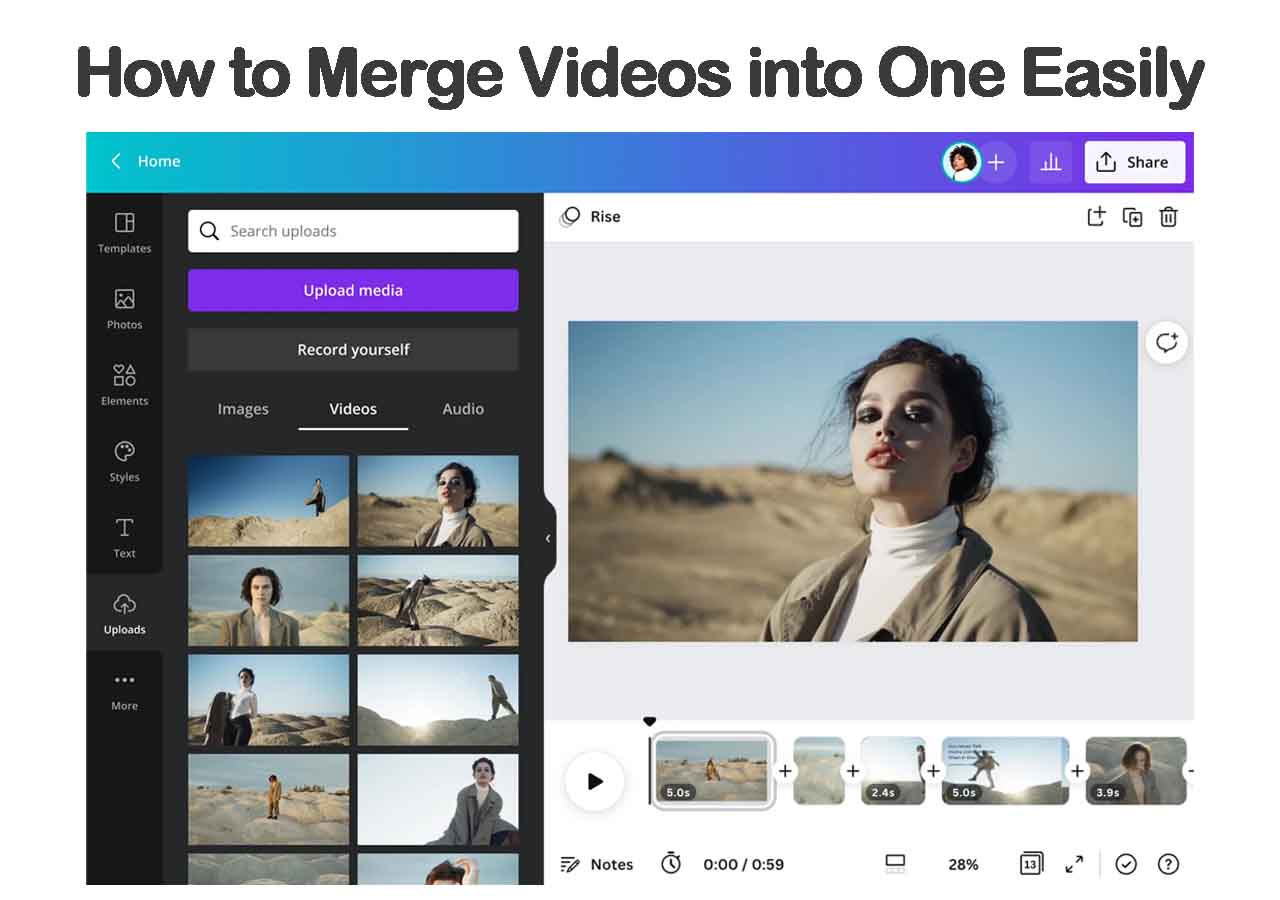 - Add audio, titles, backgrounds, and transitions
