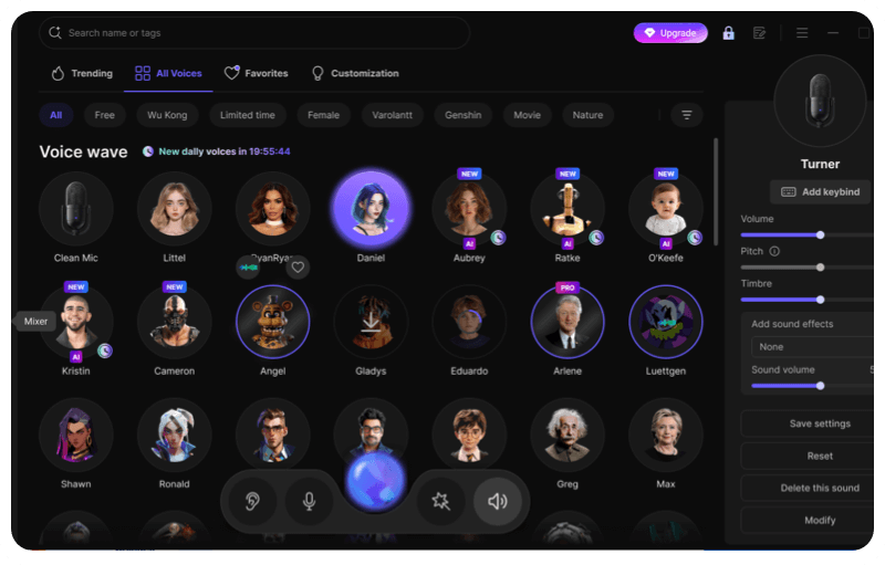 We consider EaseUS VoiceWave the best voice changer in the mordern network environment. It's developed by the professional IT company, and it owns millions of worldwide loyal customers. The EaseUs voice changer sofware comes with dozens of beautiful female voice effects, and charactors of famous celebrity, movie stars, games, and so on. With EaseUS VoiceWave, you can change voice from male to femal, female to male in a click.